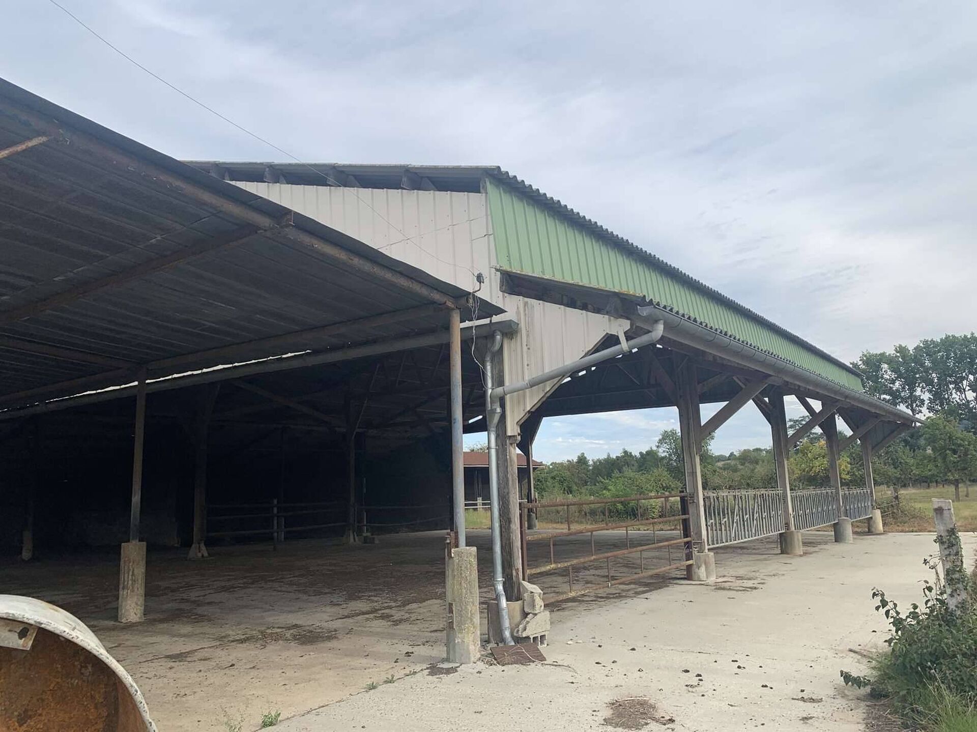 Pigeonnier - Hangar de stockage pour le bois - Ancien pressoir en colombages : un box, une cave, grand grenier sur le dessus - Ancienne étable : 3 pièces avec dalles de béton et ouvertures : début de travaux de rénovation de ce bâtiment en maison d’habitation - Stabulation et hangar : attenant une autre stabulation - Poulailler d’élevage : en état vétuste - Attenant au poulailler : hangar et stabulation avec parc de contention - Bâtiment de transformation des volailles : quais de chargement et déchargement, chaîne d’abattage, chambres froides. Un sous-sol : buanderie et vestiaire - Une stabulation - Une stabulation.