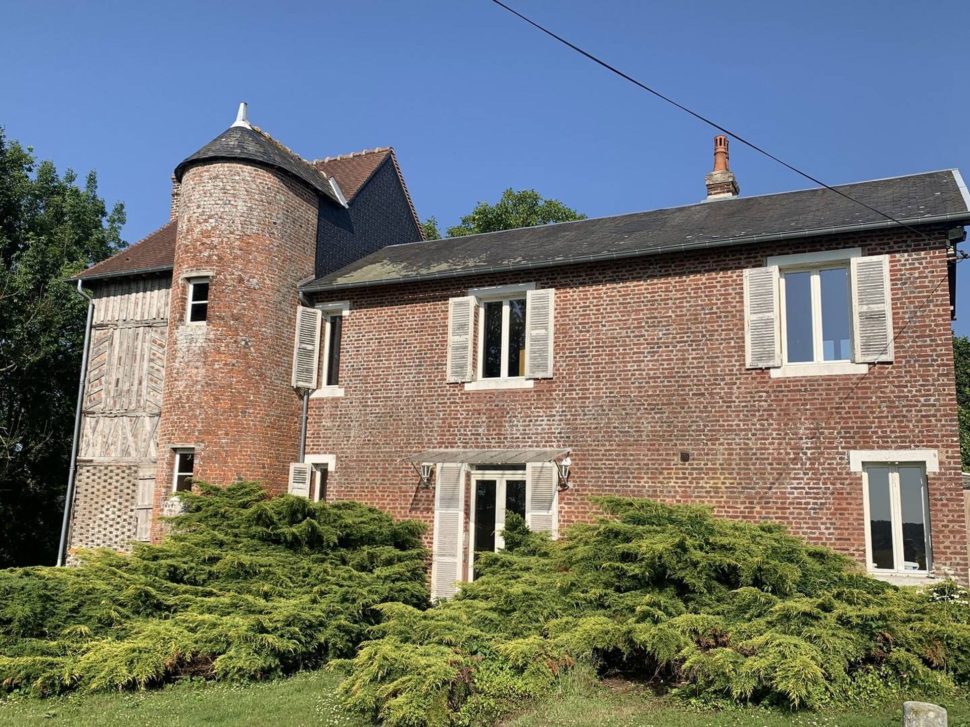 - Une maison d’habitation : construction en briques et colombages, sous couverture ardoises et tuiles, et agencée de la façon suivante :