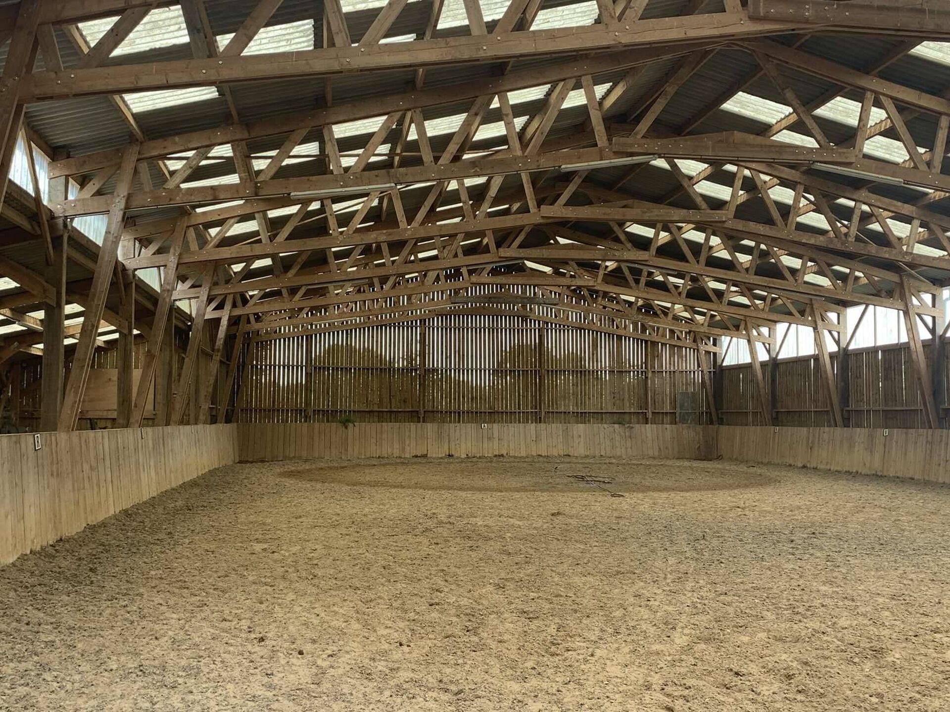 - Un manège : bardage bois – structure bois – couverture tôles fibre – ciment : sol : sable ;
