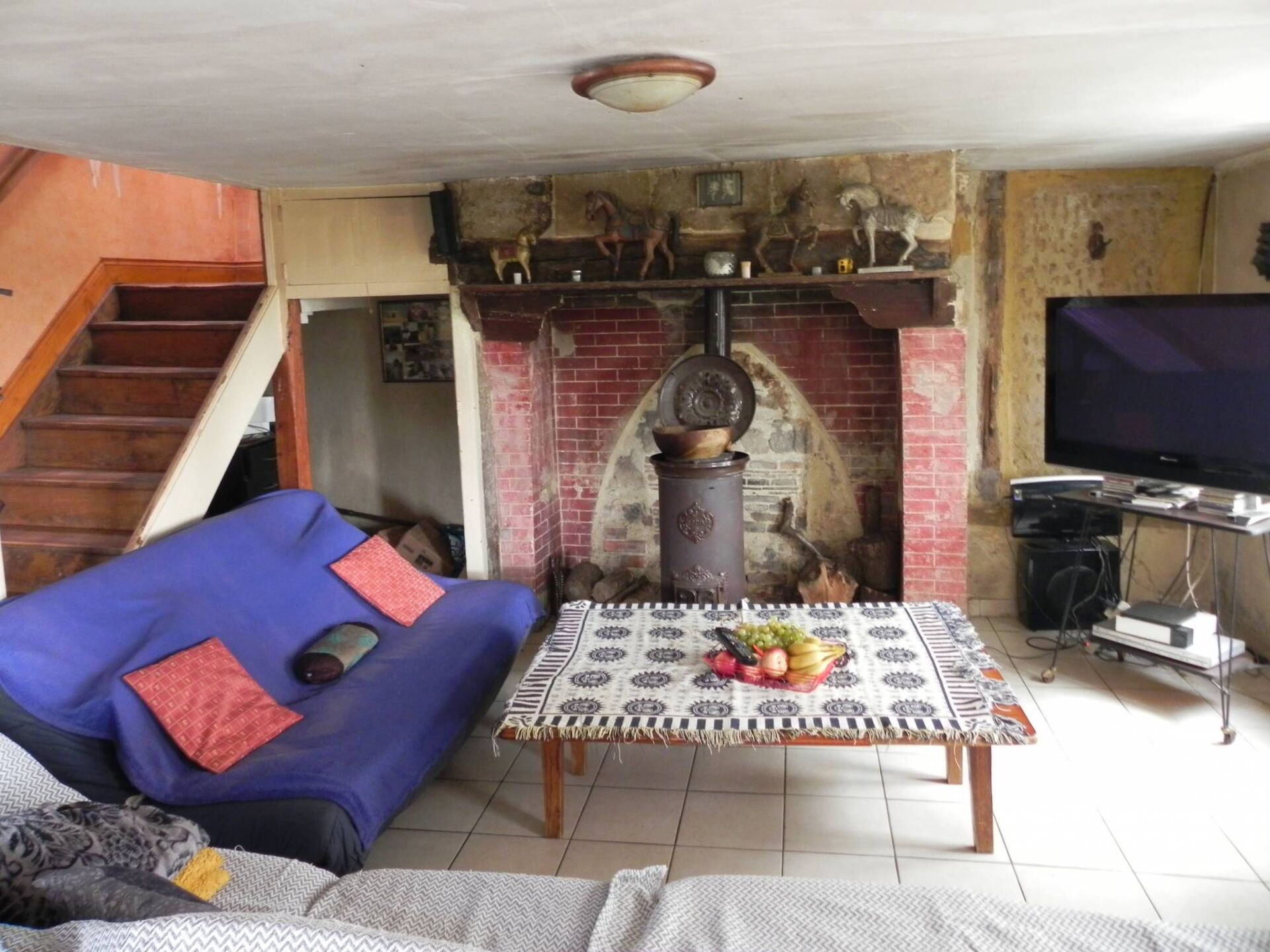 Une Demeure construite en briques rouges et parpaings, sous couverture en ardoises comprenant au rez-de-chaussée :