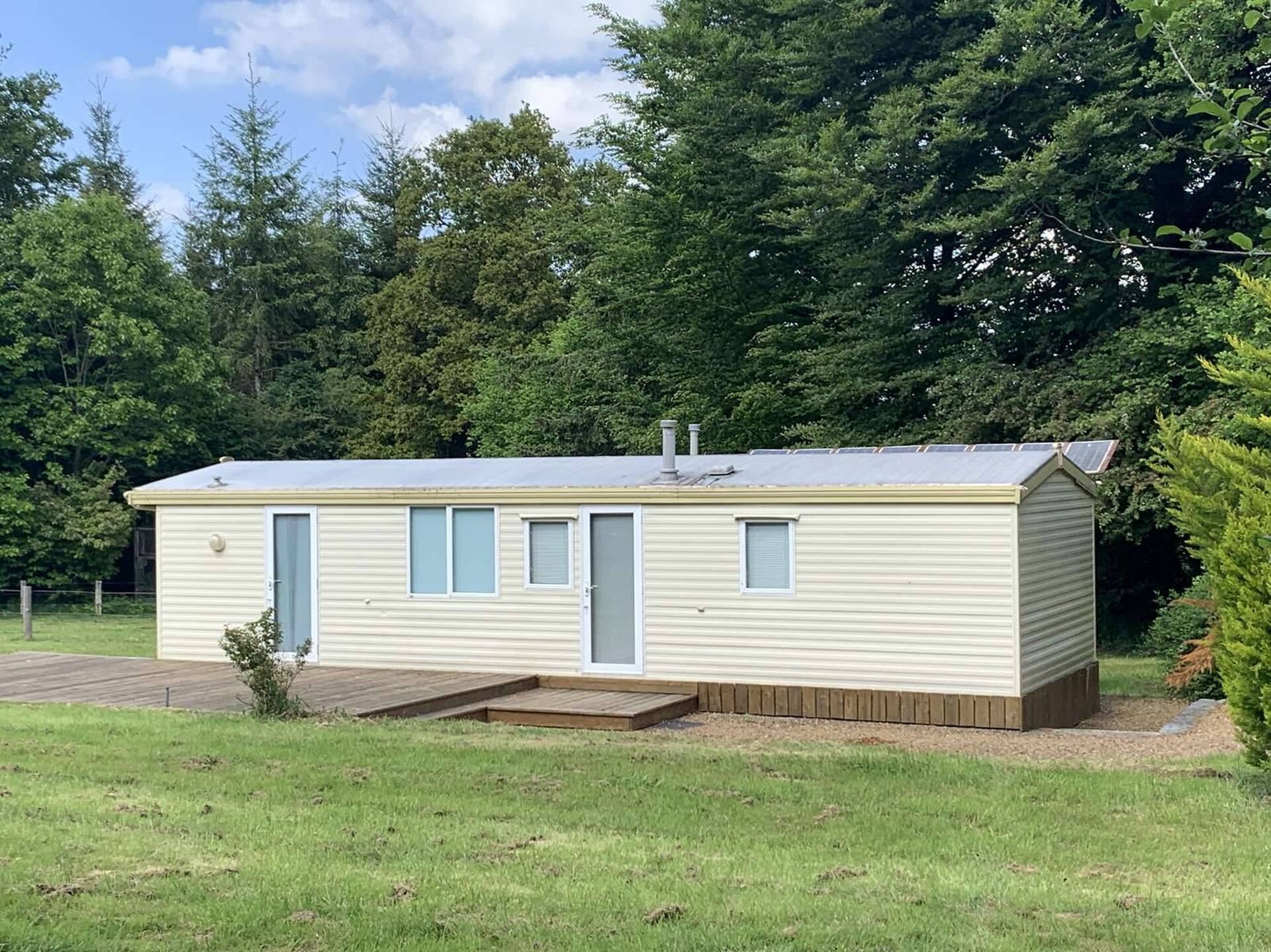 - Un mobil home avec alimentation électrique par panneaux solaires et électricité par un groupe électrogène. Terrasse. Fosse toutes eaux.